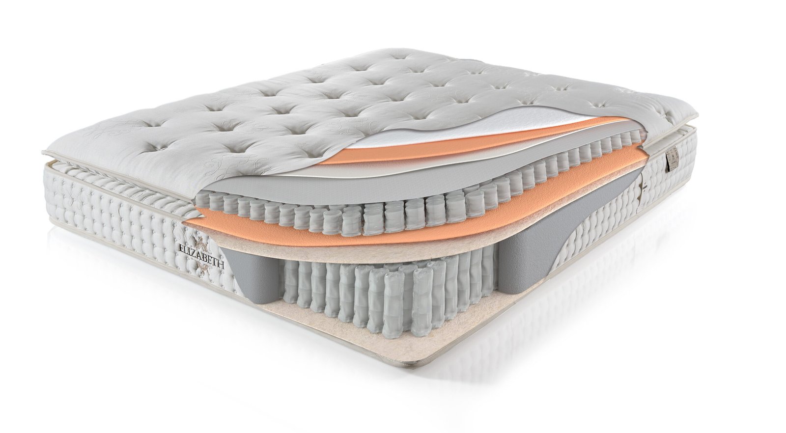 Elizabeth yatak, 1600 adet bağımsız hareket eden Pocket ve 3D Balance Pocket yay sistemiyle vücudun basıncını dengeli dağıtmaya yardımcı olur. Üst yüzeyindeki ekstra kalın ped, özellikle bel–boyun–eklem bölgelerinde konfor hissini artırır. Antibakteriyel viskon kumaş yapısı ve nem alma özelliğiyle gece boyunca daha dengeli bir uyku ortamı sunmayı hedefler.